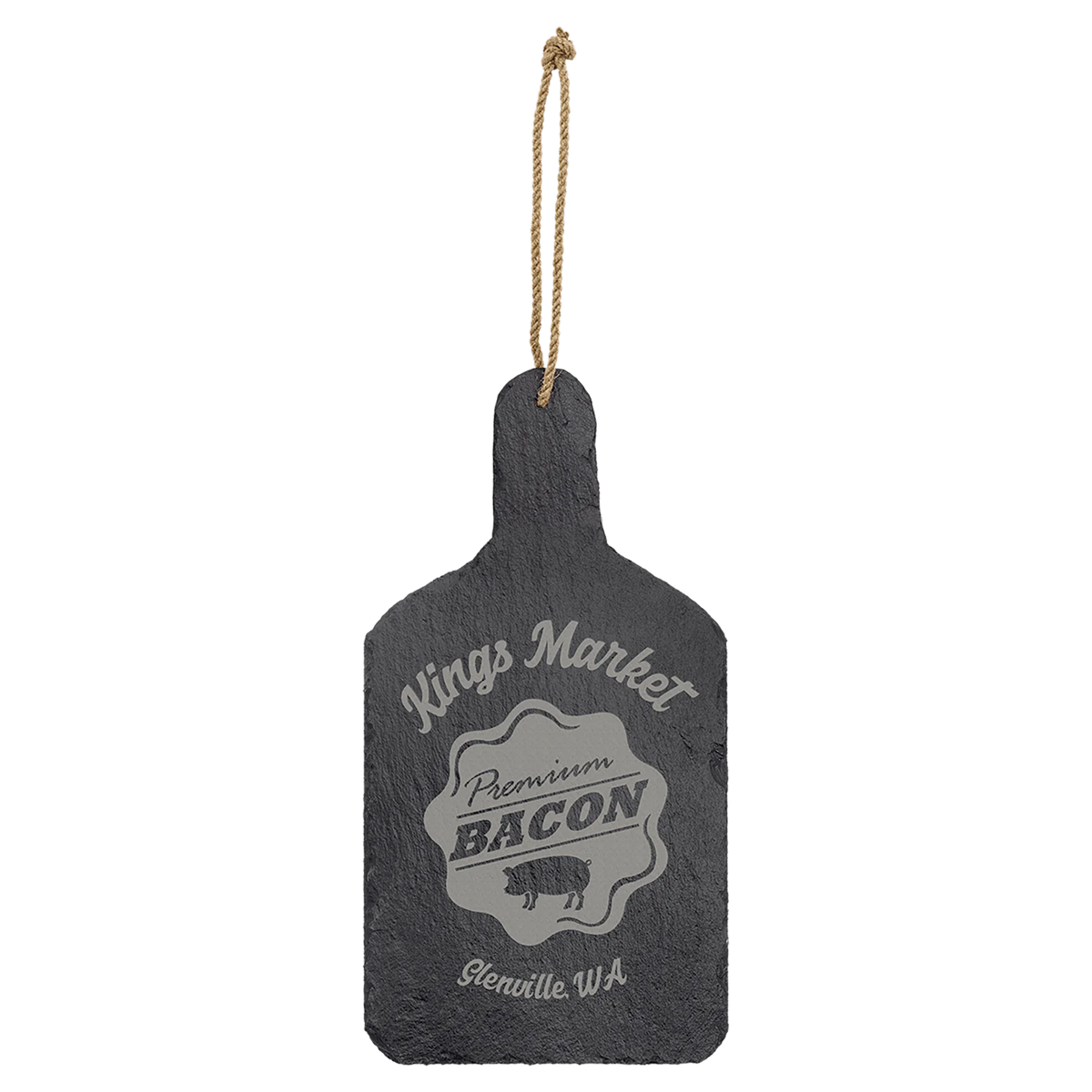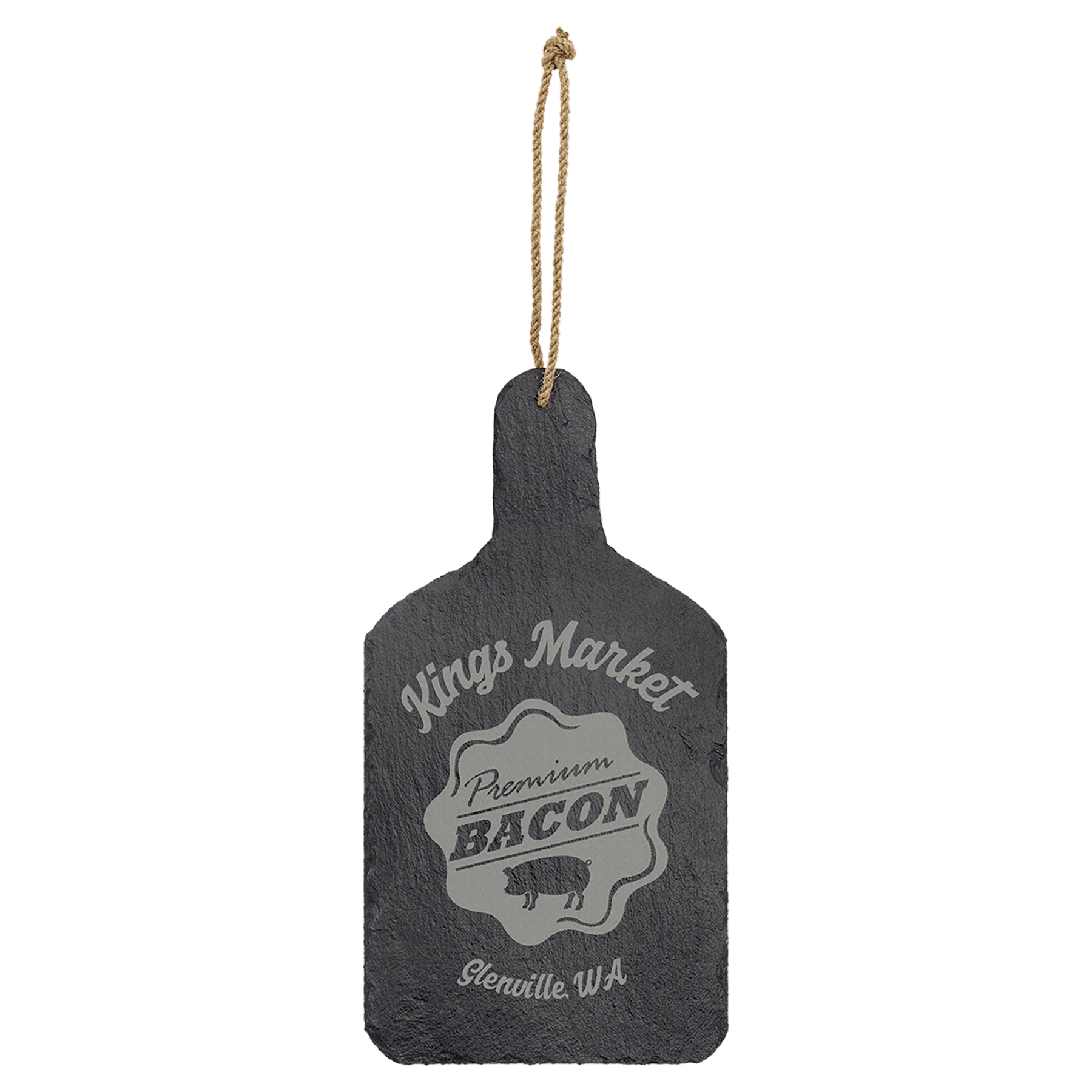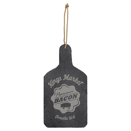Combine functionality with rustic charm with our engravable hanging slate cutting board decor. Crafted from authentic slate stone in a classic cutting board shape, this versatile piece serves as both a functional serving board and beautiful wall decor. The convenient hanging feature makes it perfect for kitchen display when not in use.