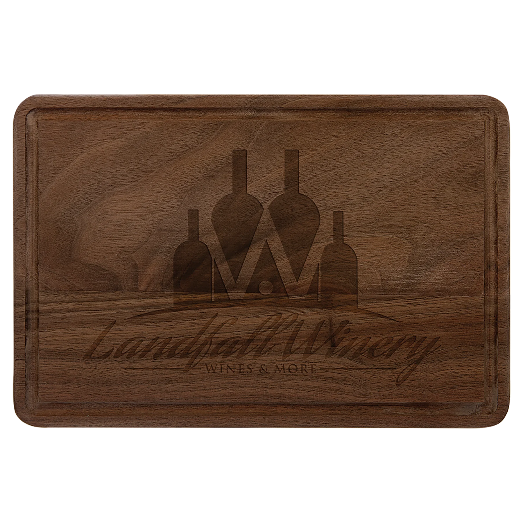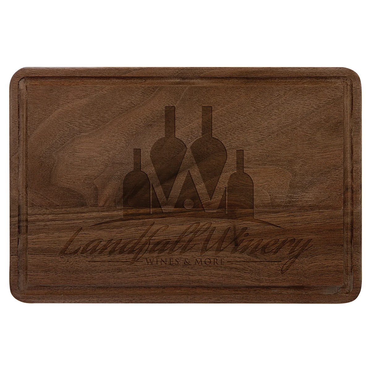 Enhance your kitchen with this premium 9" x 6" walnut cutting board featuring a convenient drip ring to catch juices and prevent mess. Crafted from beautiful, rich walnut wood, this compact board is perfect for everyday meal prep and entertaining.